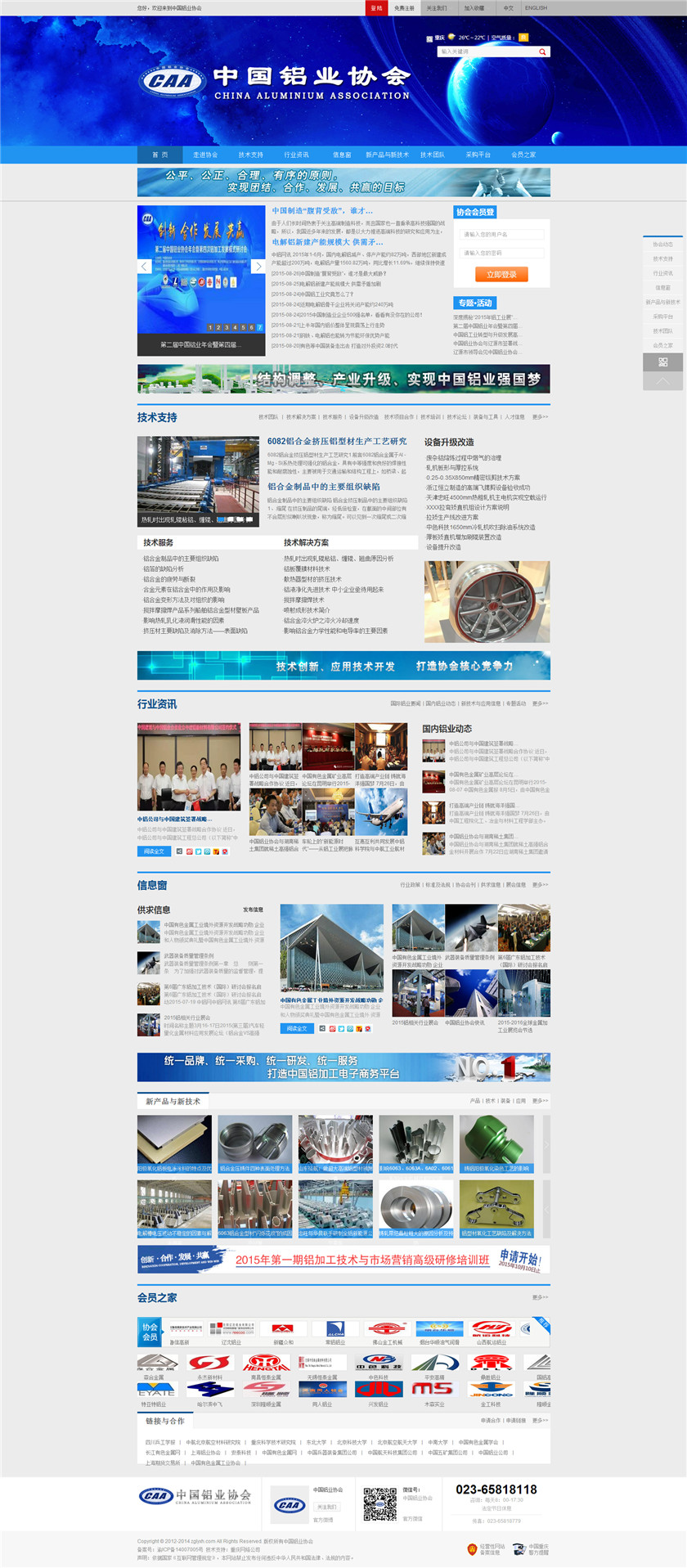 Project Description 中国铝业协会是由中国国内主要从事铝合金铸造、板、带、箔、管、棒、型材、锻件等企业组成的行业协会组织,协会由国内具有一定规模和影响力的企业发起,已有三百多家会员企业,目前还有很多企业踊跃希望加入,协会现有会员企业年销售额1000多亿元人民币,协会会员企业分布在国内华东、华南、西南、环渤海、东北、胶东半岛等中国经济活跃地区;产品涵盖航空航天、兵器装... Official website address 大足http://www.caa2014.com I want to share