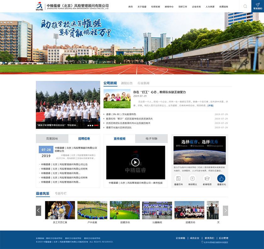 Project Description 中精蕴睿(北京)风险管理顾问有限公司2013年,现有教职工及各科目教育专家80多人,致力于为各中小培训学校(机构) 提供教育相关政策咨询与指引、法律服务、人才引进与培养、师资队伍建设与培训、教学教研与学科创新、市场营销企划、文化 理念塑造与品牌输出的专业化教育管理全方位的综合服务。 Official website address 大足http://in-re.com/ I want to share